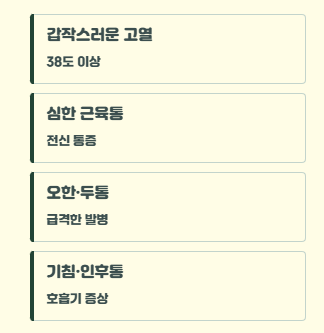 - 응급 신호(호흡곤란·흉통·의식저하 등)면 지체 없이 의료기관
