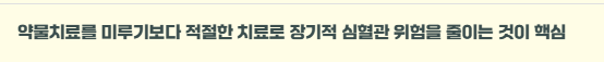 이 경우에는 약물치료를 미루기보다는 적절한 치료를 통해 혈압을 안정화하는 것이 장기적인 심혈관 위험을 줄이는 데